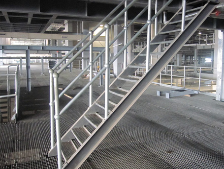 檢修平臺鋼格柵板是用扁鋼按照一定的間距和橫桿進(jìn)行交叉排列,并且焊接成中間帶有方形格子的一種鋼鐵制品,檢修平臺鋼格柵板主要用來做鋼結(jié)構(gòu)平臺板,鋼梯的踏步板等.檢修平臺鋼格柵板一般采用碳鋼制作,外表熱鍍鋅,可以起到防止氧化的作用。檢修平臺鋼格柵板也可以采用不銹鋼制作。檢修平臺鋼格柵板具有通風(fēng),采光,散熱,防滑,防爆等性能。檢修平臺鋼格柵板應(yīng)用范圍極其廣泛···